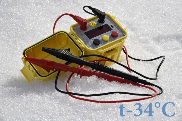 - В приборе применен для отображения информации светодиодный дисплей. Связано это с климатическим исполнением. Мегаомметр полностью работоспособен, с гарантированным сохранением заявленных метрологических параметров вплоть до -30 °С (заявлено Производственной компанией "Контрольно-Измерительные Приборы") и ниже (на практике).