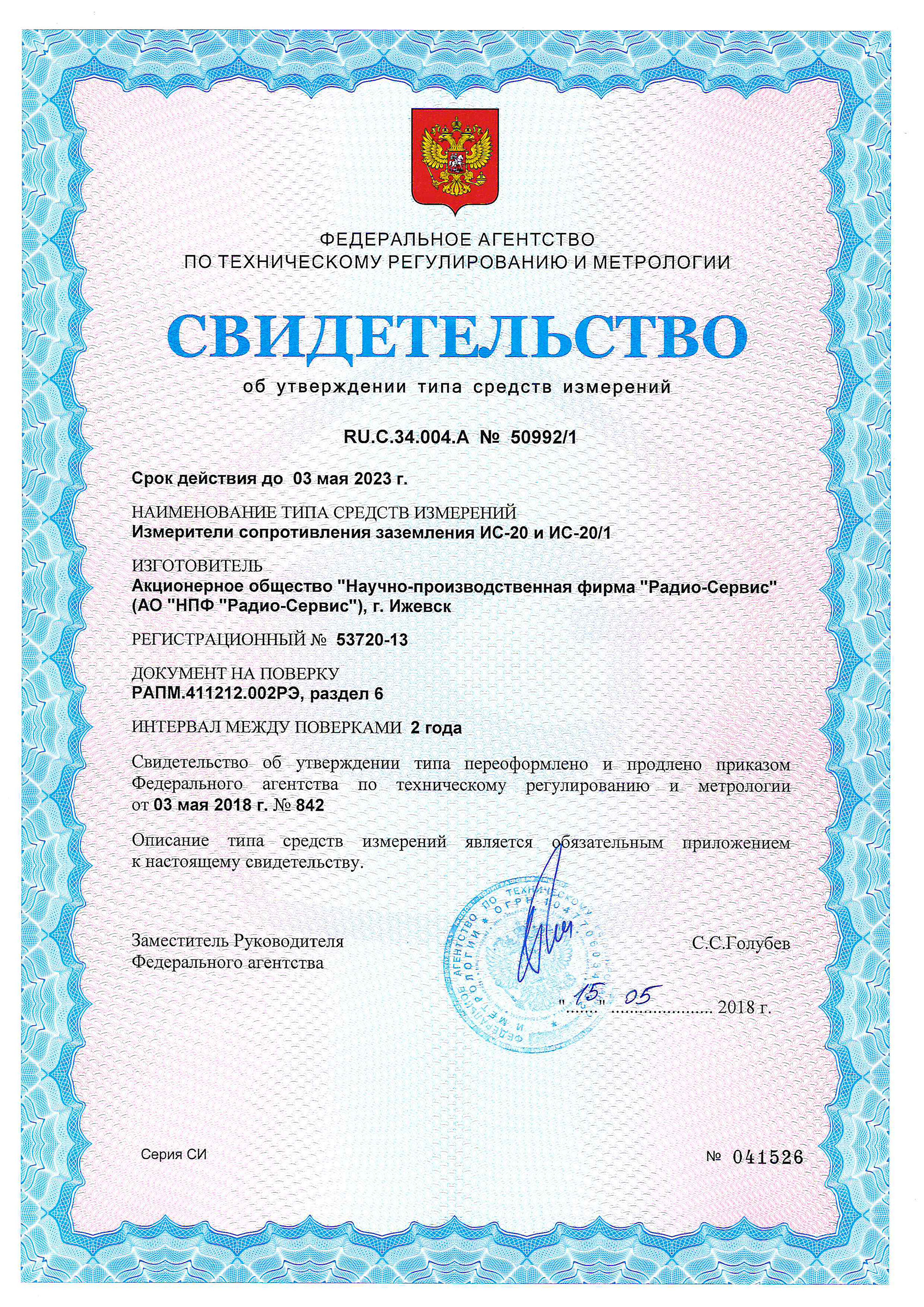 Свидетельство об утверждении типа средств измерений скачать (1.83 MB)