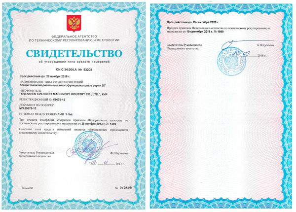Свидетельство о включении в Госреестр СИ РФ Клещи токоизмерительные серий DT скачать (49.61 kB)