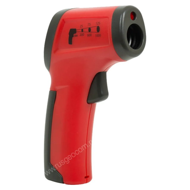 Бесконтактный пирометр RGK PL-8 имеет разрешение 8:1, встроенный лазерный указатель облегчает наведение на зону измерения температуры. Корпус прибора выполнен в форме пистолетной рукояти, а измерения производятся нажатием большой спусковой кнопки. Полученные данные отображаются на встроенном жидкокристаллическом дисплее прибора. Такая эргономика позволяет легко и удобно проводить измерения и снятие показаний. Выполняя замеры в неудобном положении, вы можете зафиксировать текущие температурные показатели на экране, используя функцию DATA HOLD.