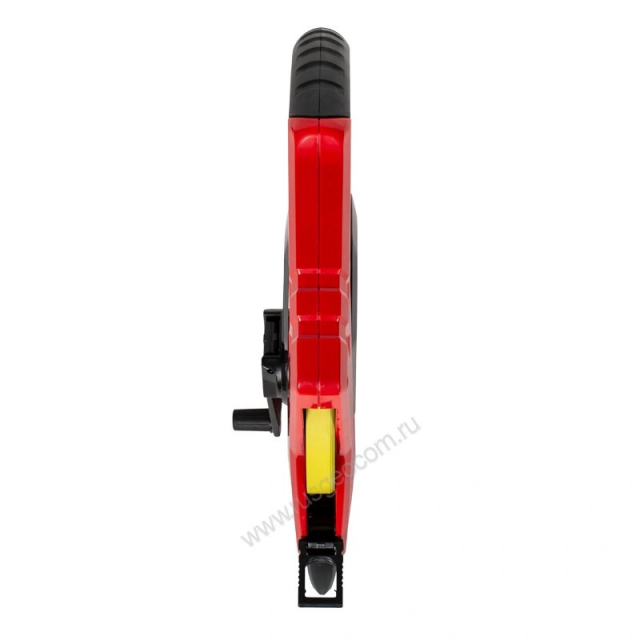 Заостренный наконечник, установленный в нижней части корпуса, расположен по центру механизма рулетки. Благодаря специальному отступу от наконечника ленты, вы можете установить рулетку и вести отсчет строго от нужной точки, например, от закрепленного геодезического пункта.