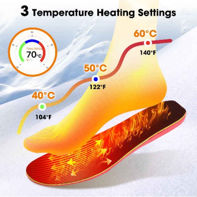 Встроенный датчик температуры и чип управления, автоматически отключает нагрев до тех пор, пока он не достигнет безопасной температуры. Стелька имеет эффект свода стопы, подходит для формы стопы (стелька может быть подрезана) и выдерживает статическую нагрузку до 200 кг;