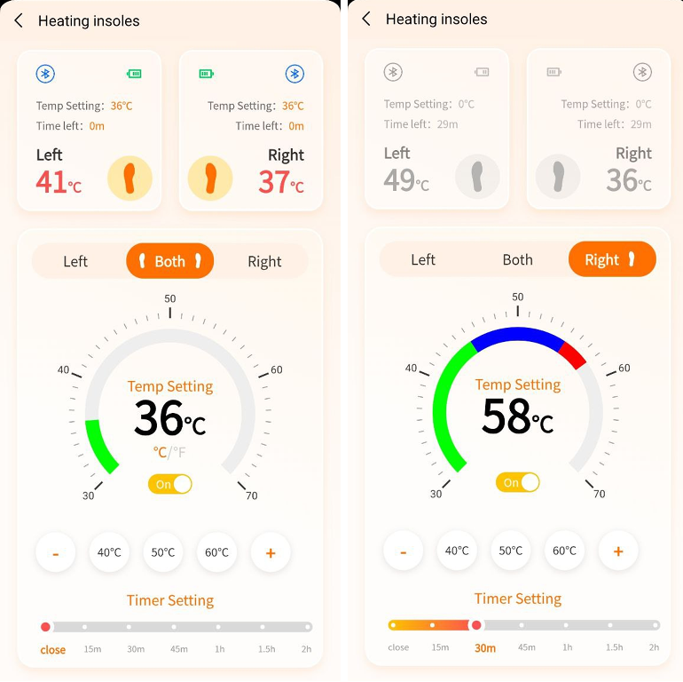 Температурой и режимом работы стелек можно управлять как автономно, так и со смартфона.